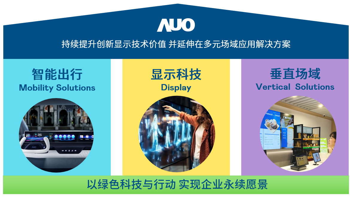 我们持续推动「双轴转型」,在精进显示技术附加价值(Go Premium),与深化垂直市场应用(Go Vertical)的策略下,对应爱游戏体育的优势竞争力与趋势,我们奠定显示科技、智慧移动、垂直场域三大永续营运支柱,在显示技术领域的根基之上,延伸布局多元场域应用解决方案。将先进显示科技助力智慧移动及垂直场域发展,并以绿色科技与行动为实践,在转型之路上贯彻永续经营之愿景。